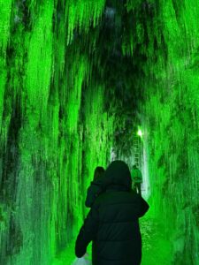 昼はナチュラルブルーに、夜は色とりどりのライトに照らされた幻想的な風景は、